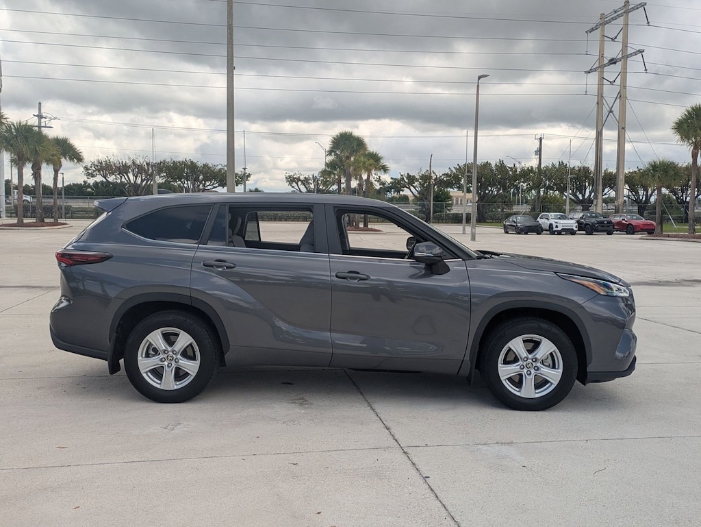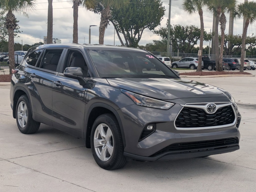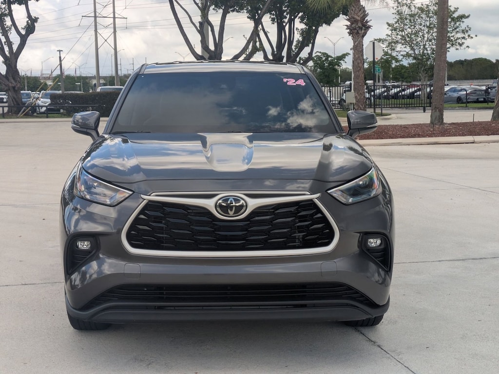 Thank you for visiting another one of AutoNation Toyota Weston's online listings! Please continue for more information on this 2024 Toyota Highlander LE with 21,501mi. This Toyota includes: GRAPHITE, FABRIC SEAT TRIM Cloth Seats *Note - For third party subscriptions or services, please contact the dealer for more information.* This versatile SUV is perfect for families or contractors with its oversized cargo area, exceptional horsepower and option upgrades. Low, low mileage coupled with an exacting maintenance program make this vehicle a rare find. This Magnetic Gray Metallic Toyota is clean and shiny exterior makes it look like it came straight from the factory.