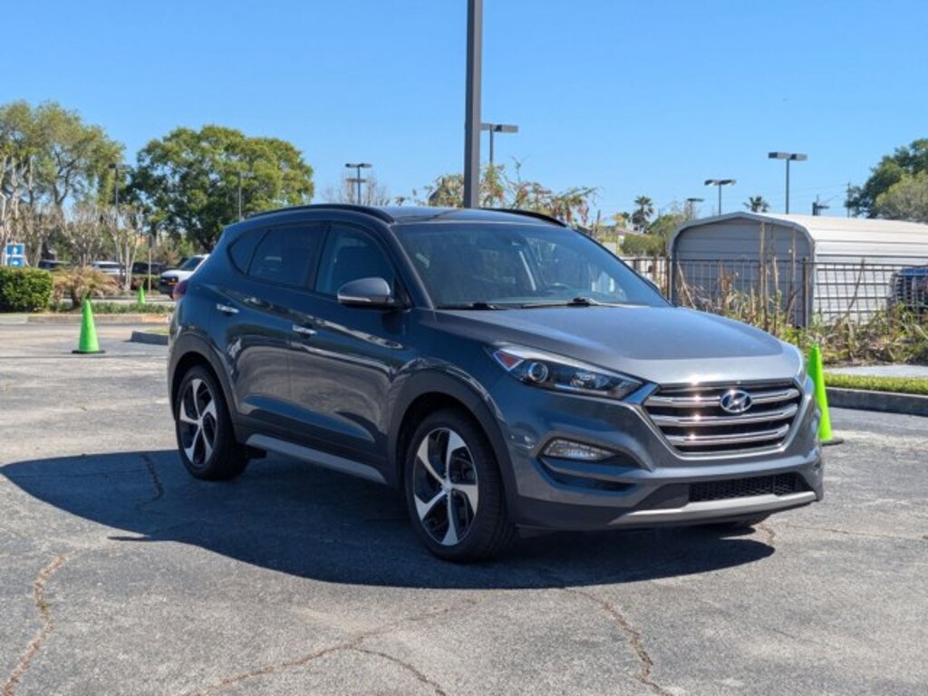 This outstanding example of a 2017 Hyundai Tucson Limited is offered by AutoNation Chevrolet Airport. This Hyundai Tucson Limited defines excellence in an SUV. It has the convenience of limitless boundaries paired with city sophistication. Simply put, this all wheel drive vehicle is engineered with higher standards. Enjoy improved steering, superior acceleration, and increased stability and safety while driving this AWD HyundaiTucson Limited. Added comfort with contemporary style is the leather interior to heighten the quality and craftsmanship for the Hyundai Tucson Limited. You can take the guesswork out of searching for your destination with this Hyundai Tucson Limited's installed Navigation system. How often was the oil changed? Were important service intervals taken care of? You'll have the records on this vehicles to know for sure. If not for a few miles on the odometer you would be hard-pressed to know this 2017 Hyundai Tucson is a pre-owned vehicle. More information about the 2017 Hyundai Tucson: The Hyundai Tucson competes in a very crowded small crossover segment, sized right between compacts like the Mazda CX-3 or Honda HR-V and the larger Toyota RAV4, Ford Escape and Honda CR-V. The Tucson shines in the interior space it affords, for both cargo and passengers, and adults will find themselves right at home in the back seat -- a rarity in vehicles like this. Efficiency, too, will attract buyers, particularly with the spritely 1.6L turbo, which rewards in both acceleration and fuel economy, offering up to 33 mpg on the highway in Eco trim. Strengths of this model include Modern, athletic styling, interior volume, standard features, and fuel efficient powertrains
